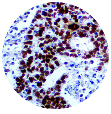 Strong and diffuse nuclear labeling is a robust model for immunostaining in most neoplastic cells.